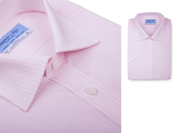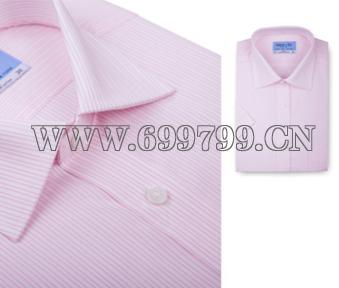 100%長絨棉,粉紅色細(xì)條紋,經(jīng)典八字領(lǐng),白色蝶貝扣,優(yōu)雅自然。