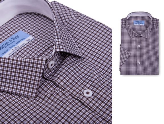 100%長絨棉,咖色小細格,經(jīng)典小方領(lǐng),更顯儒雅莊重。
