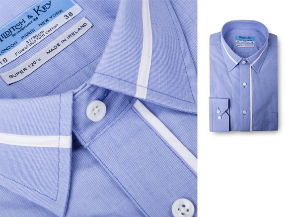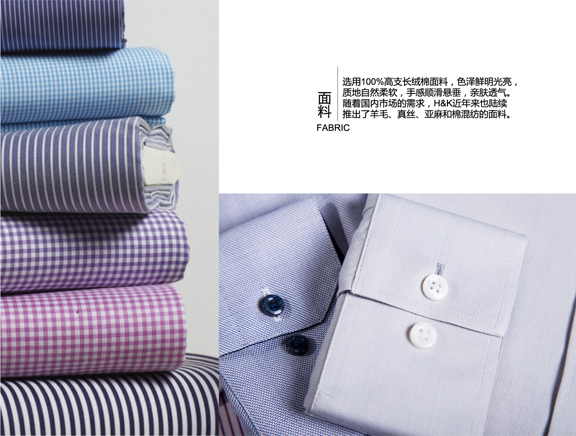 100%長絨棉,經(jīng)典藍色面料,領(lǐng)門襟鑲拼白色,小尖領(lǐng),斜角袖口,時尚不失穩(wěn)重。
