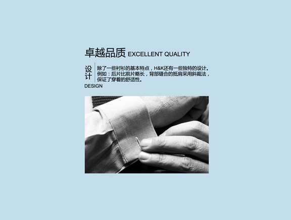 100%長絨棉。清爽的藍色條紋,透露出干凈文雅的意味,讓輕松自在的心情不因嚴謹?shù)纳虅?wù)氛圍而受到影響,八字領(lǐng),圓角袖口等無不展露經(jīng)典的魅力。