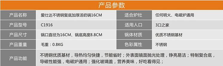 產(chǎn)品名稱 : 愛仕達(dá) 唯雅不銹鋼奶鍋-WY-76