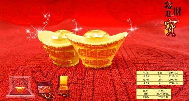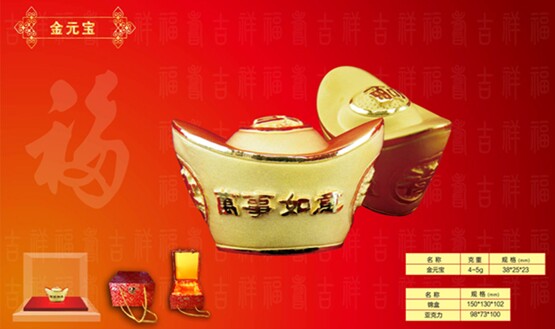 元寶原是我國特有的古錢幣,用金,銀諸造,其造型渾厚墩實(shí)?,F(xiàn)在金元寶則參照古代元寶的獨(dú)特造型,以花紋,配以吉語,融傳統(tǒng)名族風(fēng)格與現(xiàn)代審美情趣與一體。圖案采用新工藝處理是花紋亮麗,更顯華貴典雅。它不但具有鑒賞性紀(jì)念性、包值性永久收藏品,也是具有名族風(fēng)采的饋贈海內(nèi)國際貴賓高檔禮品。本元寶限量定制,具有收藏價(jià)值。