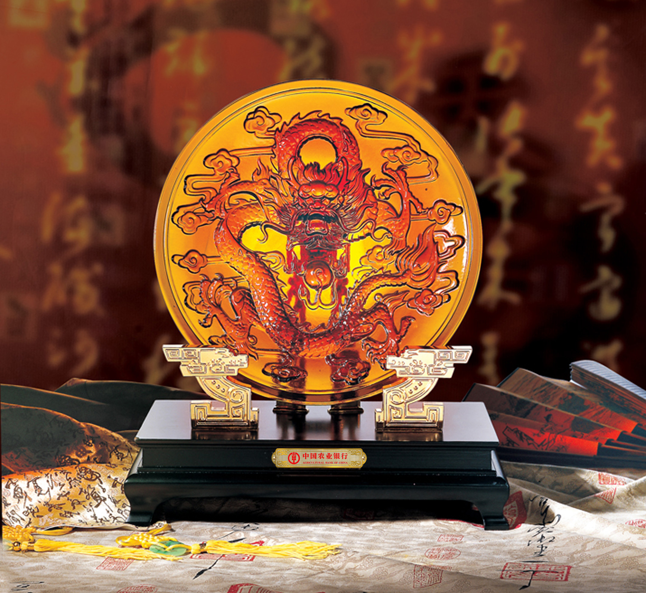 唯雅禮品為“農(nóng)業(yè)銀行”個(gè)性定制金龍聚福印章和盛世龍盤。
