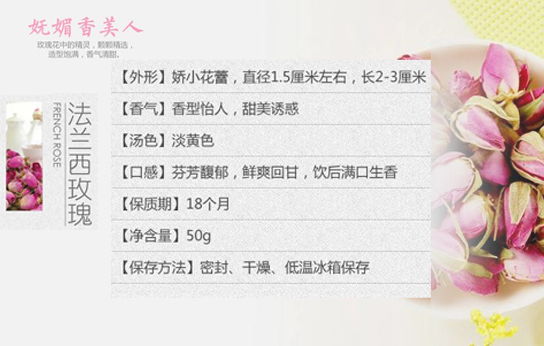 【推薦理由】:玫瑰花含豐富的維生素A、C、B、E、K,以及單寧酸,能改善內(nèi)分泌失調(diào),玫瑰花茶,性質(zhì)溫和,降火氣,可調(diào)理血氣,促進血液循環(huán),養(yǎng)顏美容。且有消除疲勞,愈合傷口,保護肝臟胃腸功能,長期飲用亦有助于促進新陳代謝。