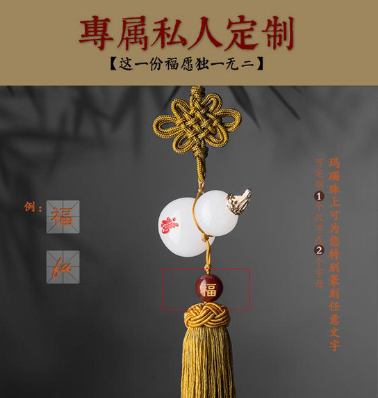 感謝您禮品定制選擇唯雅禮品公司的福祿天然玉石汽車掛件產(chǎn)品,作為專業(yè)的禮品定制廠家的我們可按您的要求在保溫杯上印制LOGO和圖案。杭州唯雅禮品公司除專業(yè)生產(chǎn)茶具禮品外,還生產(chǎn)定做促銷禮品,保溫杯,廣告塑料杯,不銹鋼真空杯,簽字筆,禮品筆,廣告扇,個性創(chuàng)意小禮品批發(fā),無紡布環(huán)保購物袋,紙袋禮品袋印刷,臺歷掛歷年歷周歷,辦公禮品,筆記本,記事本,皮具,獎牌獎杯,數(shù)碼相框, U盤,優(yōu)盤生產(chǎn),更多禮品定制服務請咨詢中國禮品定制網(wǎng)在線客服,或登陸我們的禮品定制網(wǎng)站www.699799.cn進行查找。