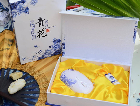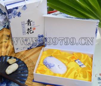 【品名】:金泥坊青花鼠標+青花瓷U盤兩件套
