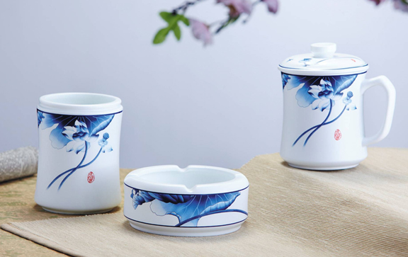 【產(chǎn)品名稱】:頤和源和衷共濟(jì)青花啞光臺面杯三件套