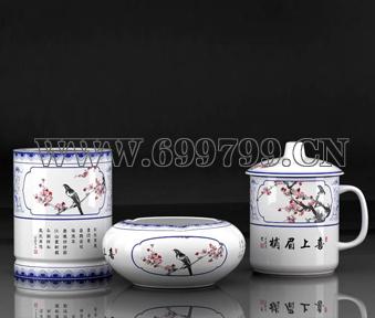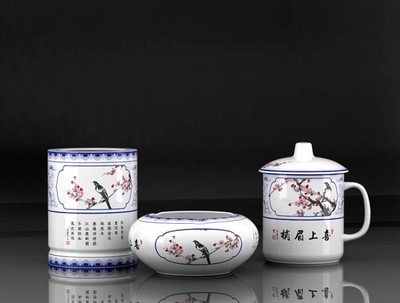 【產(chǎn)品名稱(chēng)】:頤和源喜上眉梢青花粉彩骨瓷臺(tái)面杯三件套