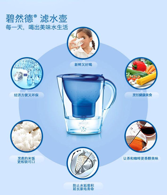 【什么是濾水壺】:濾水壺是一種移動型手持式家用飲用水過濾設(shè)備,以快速便捷的方式來將飲用水凈化。通過內(nèi)置濾芯過濾水中顆粒雜質(zhì)、浮游生物、異味、重金屬、化合物等有害物質(zhì),改善水質(zhì)和口感。