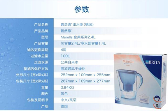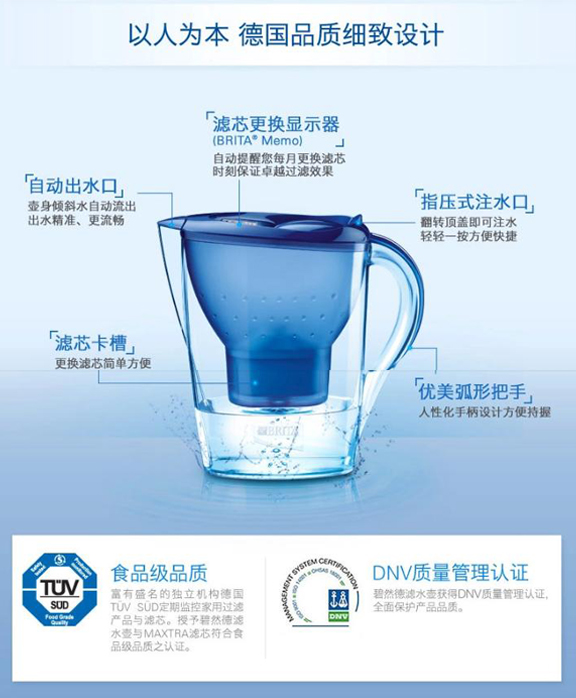 【產(chǎn)品名稱】:德國原裝碧然德Brita濾水壺凈水壺凈水器Marella2.4L