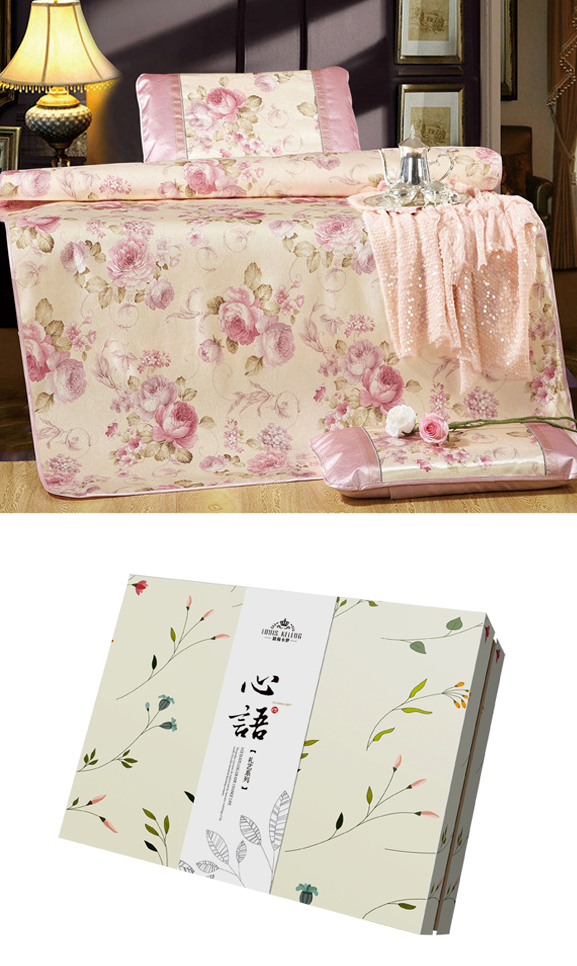 【產(chǎn)品說明】:精品印花冰絲涼席優(yōu)選再生植物纖維,拉絲加工編織,再配以家紡布料及工藝,天然綠色。為環(huán)保產(chǎn)品。。因席面較為密實,所以表面光滑貼身,有良好的親膚性。