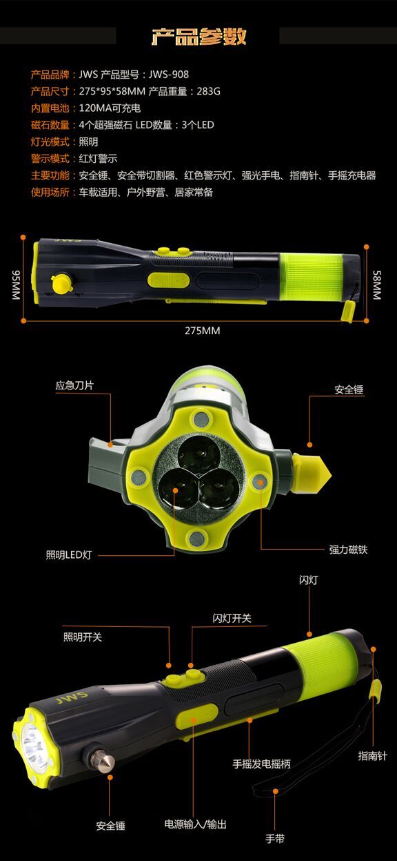 - 產(chǎn)品名稱:多功能車載救生錘手電筒