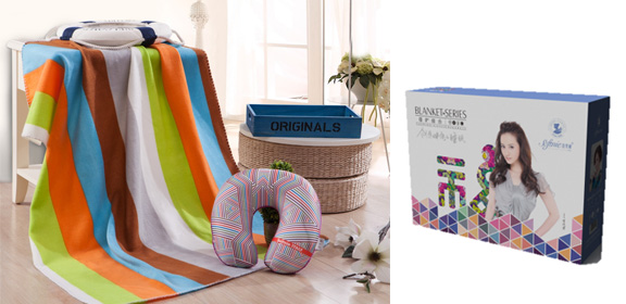 芙妮毯護(hù)組合,是U型枕+毯子組合,枕頭根據(jù)人體頸項部的生理曲線制作出U型枕,面料光滑彈性好,觸感舒適,天鵝絨不掉毛不掉色耐臟易清洗,毯子面料柔軟保暖性好,花型由不同顏色的條子組成,使產(chǎn)品時尚而淡雅,兩者完美的組合貼合人們心里是送禮首先產(chǎn)品。
