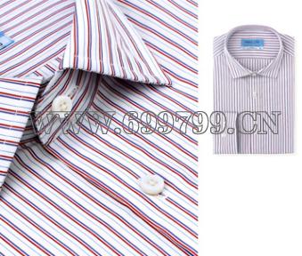 100%長絨棉,紅藍色細條紋,小八字領(lǐng),嚴(yán)謹(jǐn)不失優(yōu)雅。