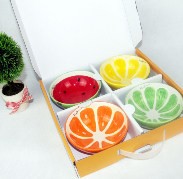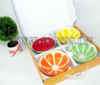 組合:四個水果陶瓷碗、精美紙盒包裝