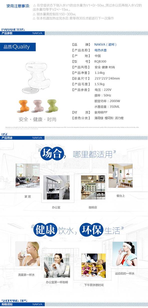倒入水量需控制在150-300ml之間。出水規(guī)格為:在空壺狀態(tài)下倒入水V1的出水量為V1 +0/-50ml,煲過水以后再倒入水V2的出水量均等于V2 +/-15ml,在出完水后需等待30s才能進(jìn)行下一次操作。