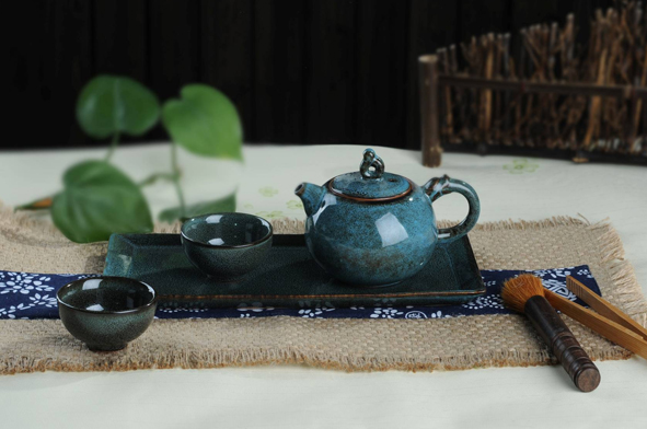 產(chǎn)品名稱:藍(lán)天目釉龍頭壺茶具組-八方禮