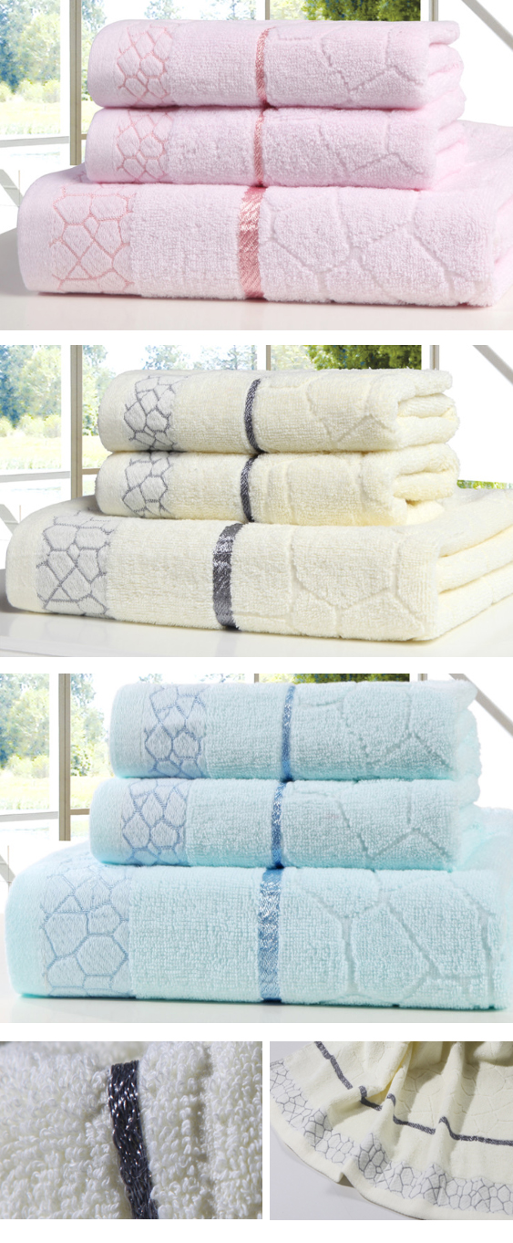 【品名】:水絨緞檔提花浴巾毛巾三件套---依貝絲
