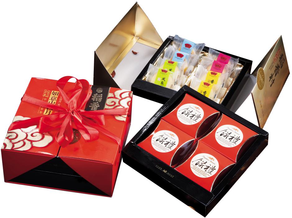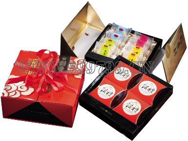 此款采用雙層禮盒包裝,小巧精致,上層為傳統(tǒng)月餅包裝,下層為新款獨立包裝茶點。包裝新穎,內(nèi)含種類豐富。