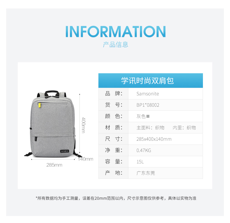商品特點(diǎn)/賣(mài)點(diǎn):采用優(yōu)質(zhì)舞龍紗制成,輕質(zhì)織物無(wú)重感;防潑水性能,具有防潑水抗撕裂的特點(diǎn),雨天更能保護(hù)重要物品;強(qiáng)大置物倉(cāng),可存放14英寸的電腦,主袋有電腦、IPAD保護(hù)層,豐富的文組功能;人體工程學(xué)肩帶,長(zhǎng)時(shí)間背負(fù)不疲勞,增加背負(fù)的舒適和穩(wěn)定,利落動(dòng)身;
