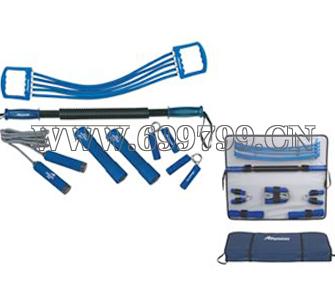 5條可拆膠管拉力器、臂力器、兩個啞鈴、兩個握力器、跳繩
