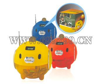 產(chǎn)品特點:FM收音機,時計,儲幣器功能組合,小豬外形,"寶來"寓意招財進(jìn)寶.