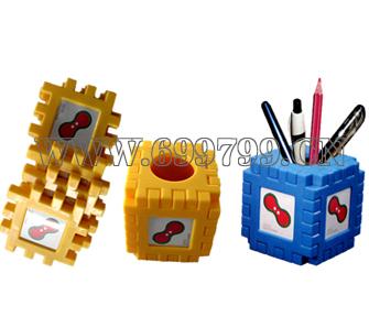 此產(chǎn)品由六個(gè)面組成,五面可放置照片;取任意三片或者三片以上就可以組合起來(lái)一個(gè)精美的筆筒,也可以組裝成屏風(fēng)、城墻、屋子等造型;有助于青少年兒童智力的開(kāi)發(fā),是一款極佳的實(shí)用性廣告促銷(xiāo)禮品。