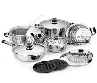 •本套裝鍋具鍋底均采用三層超厚復(fù)底、高精度拋光,組合手柄美觀、堅固、耐用