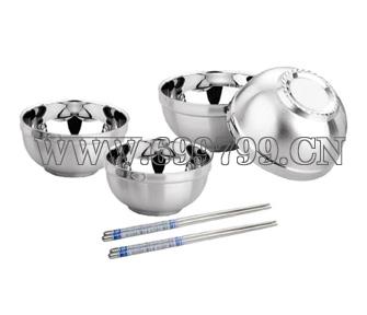 材質:優(yōu)質不銹鋼 四個碗附贈2雙不銹鋼筷子,雙層不銹鋼碗使用起來不燙手,螺旋狀防滑底部設計,碗身采用亞光拉絲工藝,不易劃傷。