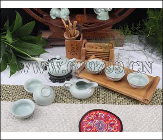 規(guī)格尺寸 :1壺1海6杯 工藝:汝窯天青