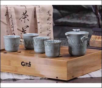 規(guī)格尺寸 :1壺4杯(帶茶盤) 工藝:官窯粉青
