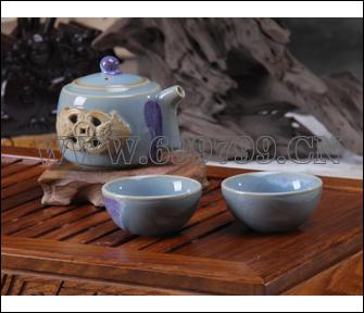 規(guī)格尺寸 :一壺兩杯 工藝:鈞窯(藍鈞)