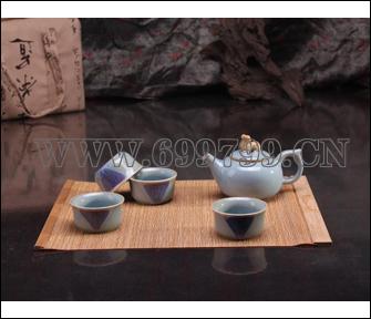 規(guī)格尺寸 :1壺4杯 工藝:鈞窯(藍鈞)