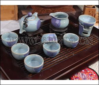 規(guī)格尺寸 :1壺1海6杯1風(fēng)爐過濾                                   工藝:窯變藍(lán)鈞
