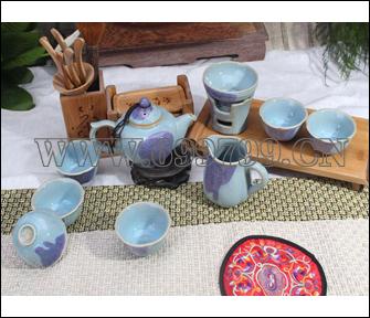 規(guī)格尺寸 :1壺1海6杯1風(fēng)爐過濾 工藝:窯變藍(lán)鈞