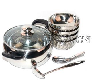 規(guī)格尺寸 :材質:304不銹鋼 ; 配件:湯鍋(1個)、碗(4個)、 長勺(1個)、小勺(4個) ; 規(guī)格:175*100mm(湯鍋)125*65mm(碗)