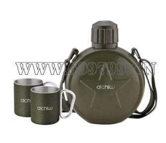 時代感復(fù)古軍壺與不銹鋼對杯搭配成套,時尚酷感