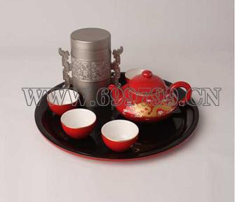 規(guī)格尺寸 :組合套件及材質(zhì) 中華紅龍?zhí)讐亍㈠a茶葉罐、漆器茶盤