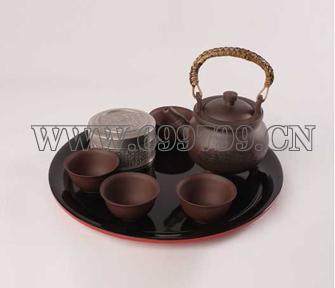 規(guī)格尺寸 :組合套件及材質(zhì) 宜興紫砂提梁鼎壺、錫茶葉罐、漆器茶盤