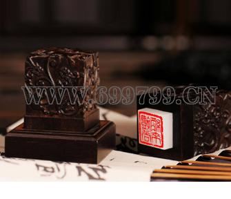 產(chǎn)品名稱:唯雅黑檀木浮雕九螭龍嵌白玉藝術(shù)印璽 博厚系類