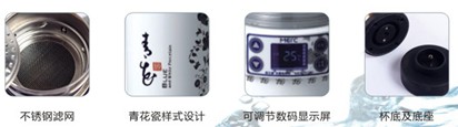 規(guī)格尺寸:70*70*220mm 容量:380ML 額定功率:95W 額定電壓:12V 可選顏色:青花瓷色/紅色/藍色
